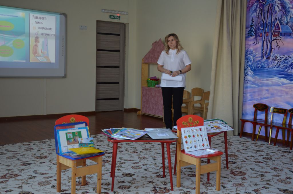 Учитель-дефектолог центра Галина Нещадная рассказала и продемонстрировала, как помочь ребенку преодолеть барьер в речевом развитии с помощью мнемотехники. На занятиях в центре педагоги, а дома – родители, использую несложные техники запоминания с помощью рисунков и схем, научат ребенка не просто механически запоминать слова, а связывать их предложения и в дальнейшем в истории. Педагог рекомендовала к использованию методические материалы для домашних занятий и показала на примерах использование карточек пекс.