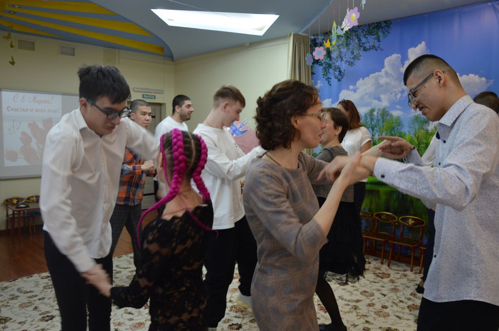 Молодежная группа активно и с юмором провела конкурс «А, ну-ка, девушки!». Парни подарили всем женщинам трогательные стихи, песни, разученные во время караоке-часа, и поддержали своих подруг в шуточных состязаниях. Праздничный вечер продолжился чаепитием и дискотекой.