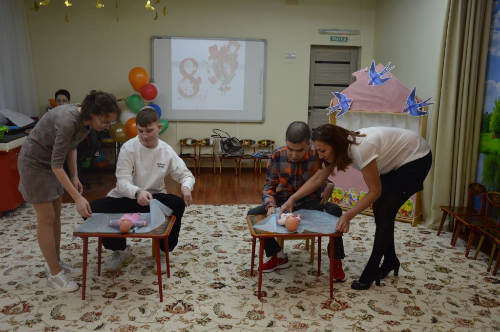В первые дни наступившей весны в областном реабилитационном центре для детей и подростков с ограниченными возможностями все песни, стихи, творческие занятия, выставки и конкурсы посвящены 8 Марта. В международный женский день воспитанники разного возраста спешат поздравить своих дорогих мам, бабушек, сестер, подруг и конечно сотрудниц центра, помогающих им познавать мир.
