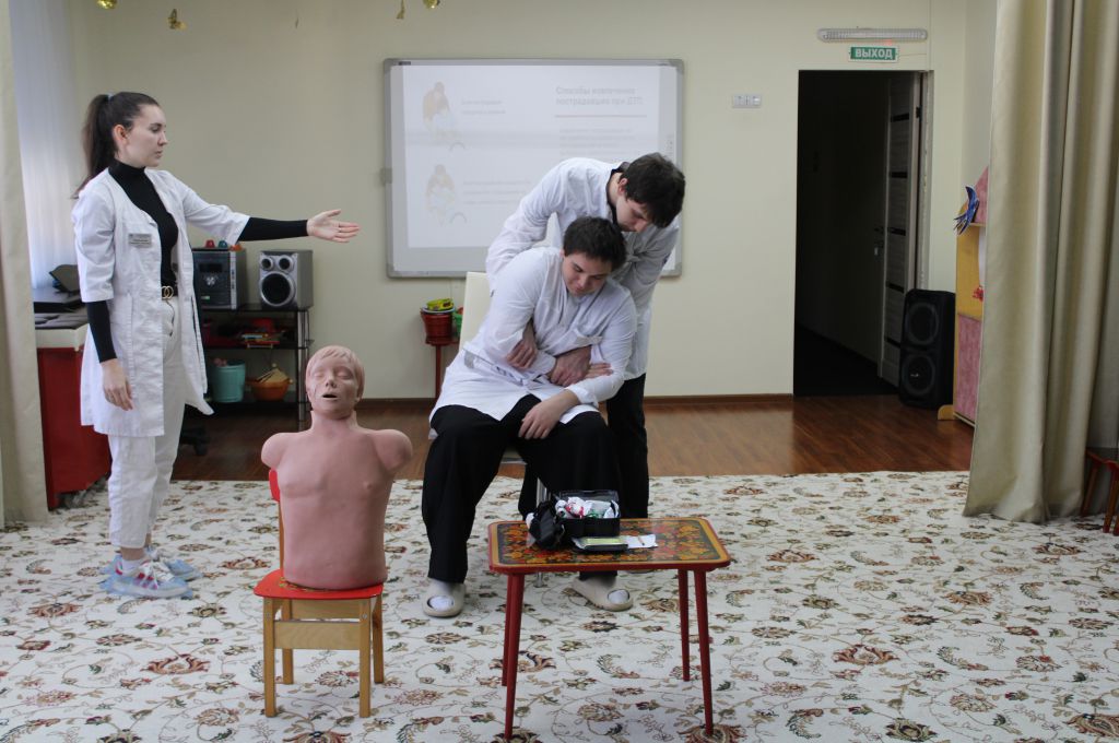 Обучение провели преподаватель и волонтеры — студенты «Лечебного отделения» государственного бюджетного учреждения «Профессиональная образовательная организация «Астраханский базовый медицинский колледж». Сотрудники реабилитационного центра получили практические знания по оказанию первой помощи при различных экстренных ситуациях, особенностях действий в зависимости от травм и возраста пострадавших, а также самопомощи.