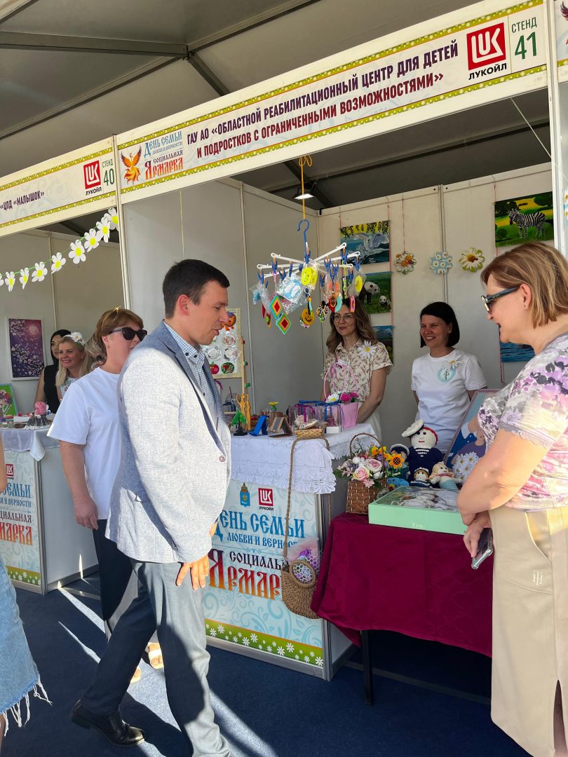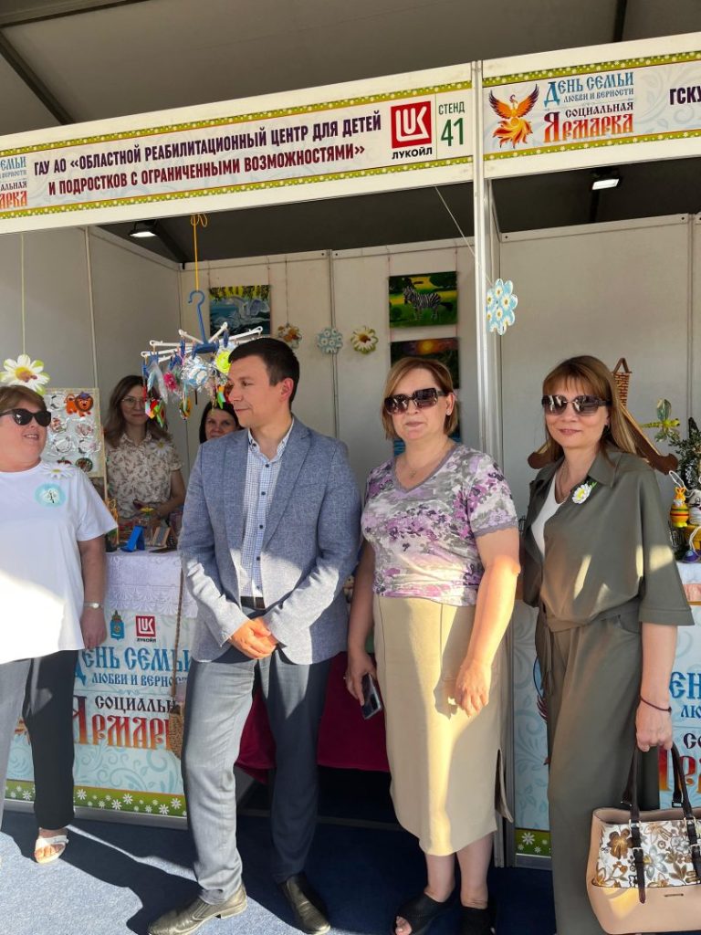 Специалисты областного реабилитационного центра для детей и подростков с ограниченными возможностями в очередной раз достойно представили творческие работы воспитанников, семейные композиции и прикладные изделия, выполненные под руководством педагогов центра на занятиях в группах дневного пребывания детьми, подростками и молодыми людьми с инвалидностью. Тема для творчества созвучна празднику, в которых состоялась ежегодная Социальная ярмарка. Работы представлены в разных жанрах: вышивка, аппликация, кружево, поделки из подручного и природного материала, сувенирная продукция с астраханской тематикой, серия картин воспитанника молодежной группы центра Тимофеева Павла.
