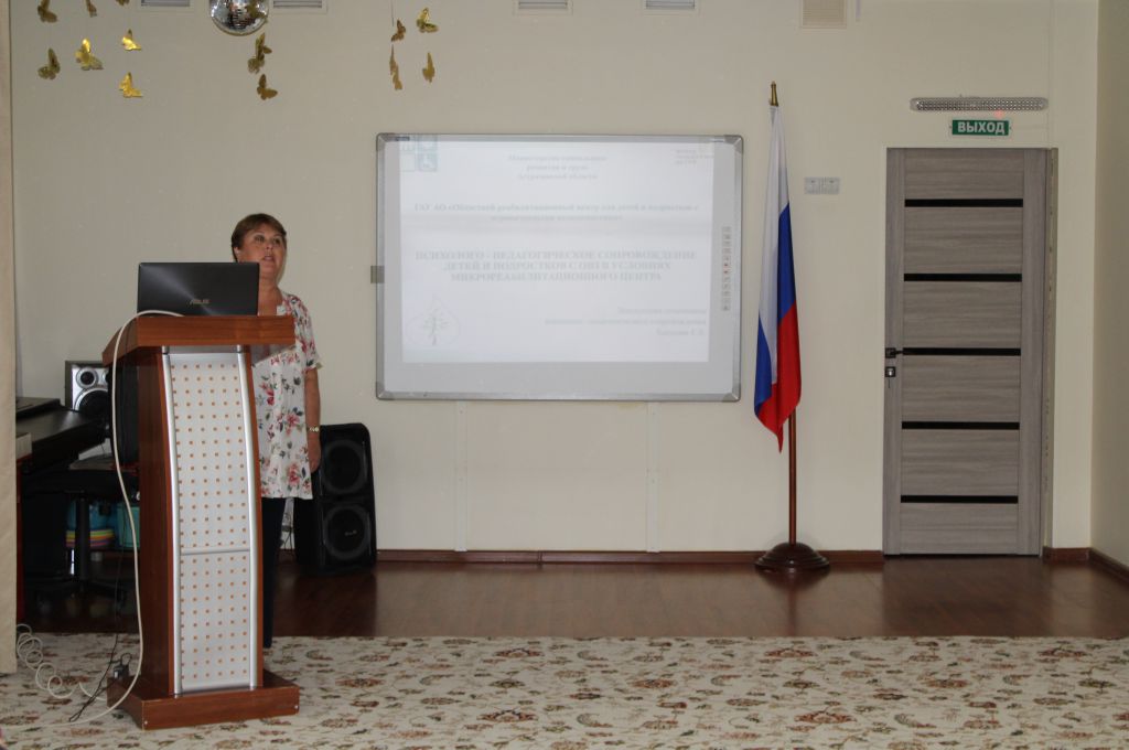 Врач-педиатр отделения консультативно-диагностической и ранней помощи Светлана Федулаева и заведующий отделением психолого-педагогического сопровождения Елена Бакулева областного реабилитационного центра познакомили коллег с особенностями организации деятельности специализированной социальной службы «Микрореабилитационный центр», внедренной в рамках грантового проекта по двум направлениям: выездной МРЦ и домашний МРЦ. Участники стажировочной площадки интересовались применяемыми технологиями, оборудованием и формой участия специалистов разного профиля учреждения в реализации представленной практики, а также практическими советами психолога в работе с родителями «особенных детей».